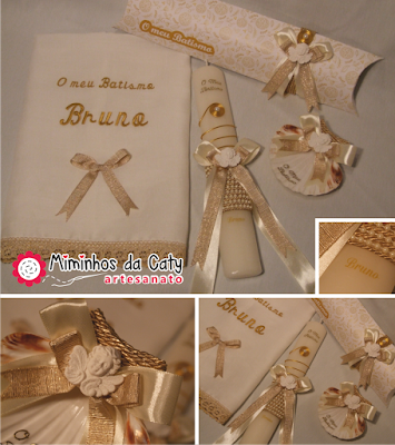 Conjunto tema «Anjo FIMO» em tons de pérola e dourado, composto por: